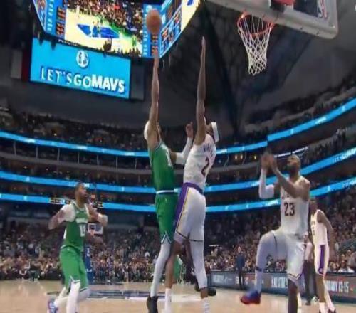 第四节比赛,威廉姆斯一上来迎着艾顿,打成2+1,帮助独行侠90比79,建立起两位数领先优势。马丁三分命中,93比79湖人被打停。