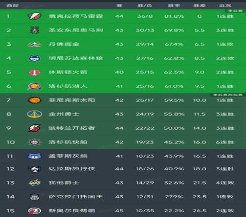 西部最新积分榜